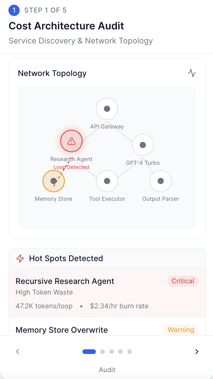 Map your LLM & API dependency graph. Identify hidden token waste and unmonitored agentic reasoning loops.