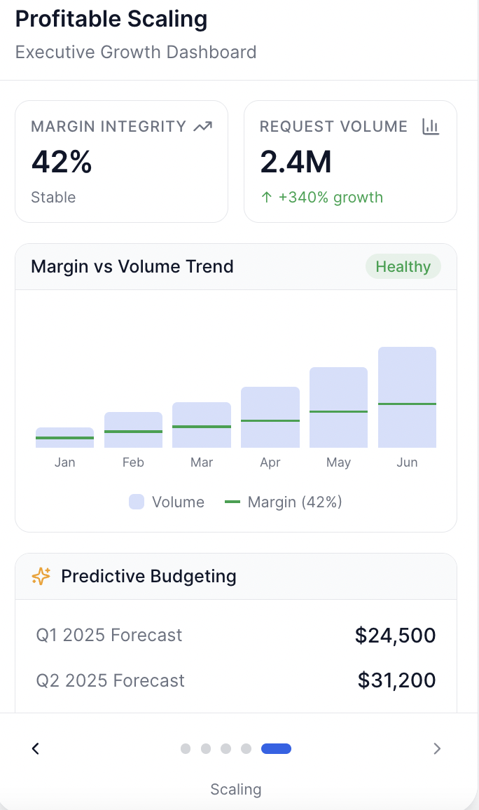 Infrastructure-Grade Pricing for AI Agents. Active protection for your bottom line. No seat limits or percentage-of-spend tax.