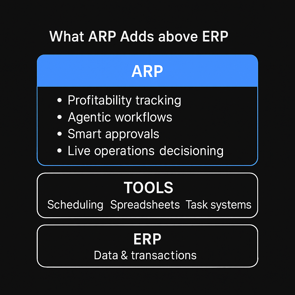 The shift toward AI‑native operations is revealing a structural gap: legacy ERPs manage data and transactions, but they don’t manage profitability, execution, or decision‑making. This is why Agentic Resource Planning (ARP) is emerging as the next operational layer.