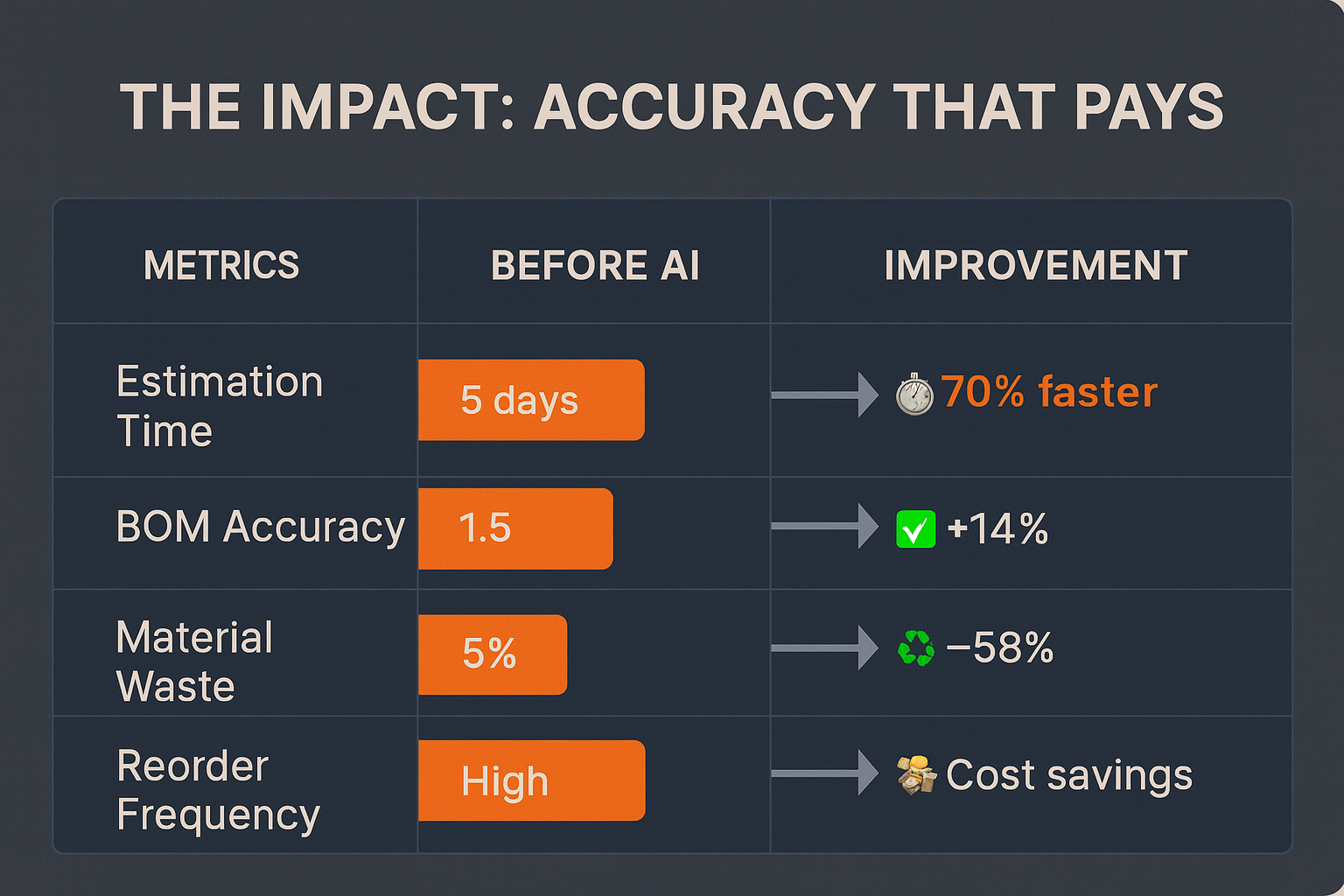 Accurate BOM estimation is no longer a tedious manual chore - it’s an intelligent, adaptive process driven by data.