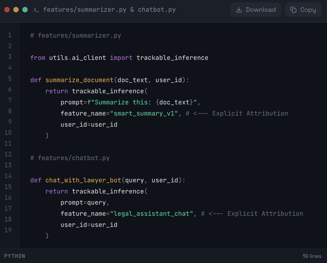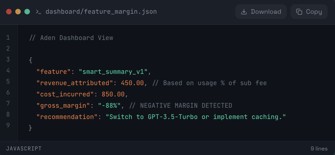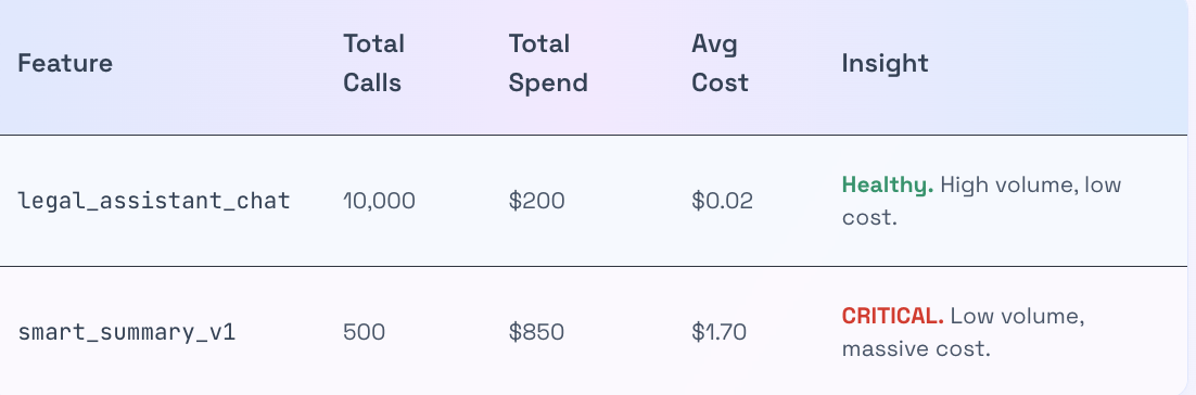You know your total OpenAI bill is $5,000 this month. But do you know if your "Summarize PDF" button is profitable?